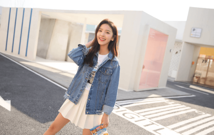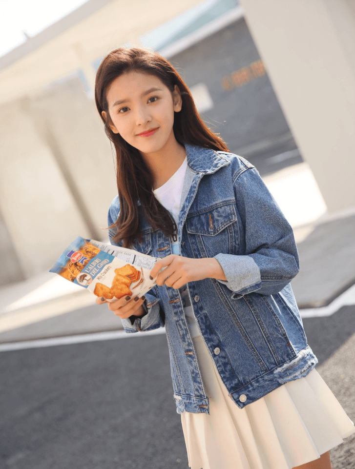 章若楠 户外 牛仔外套白色百褶短裙【55P 144M,夸克】