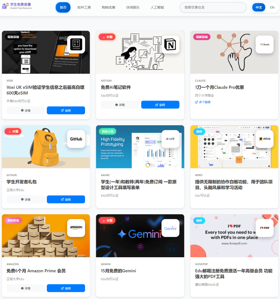 学生免费资源-一站式获取教育优惠信息散落的青春4个月前更新关注私信16910 一个学生专属优化福利与免费资源获取窗口。好好利用自己的学生资格吧,获取的一些福利部分可以挂到某鱼去转出的。 预览 网站直达 此处内容已隐藏,请评论后刷新页面查看. #青春交流分享①群:1095783761(已开放禁言) © 版权声明 文章声明 1、本网站名称:青春分享栈 2、本站永久网址:https://qingchunfxz.com/ 3、本网站的文章部分内容可能来源于网络,仅供大家学习与参考,如有侵权,请联系站长QQ1029879730进行删除处理。 4、本站一切资源不代表本站立场,并不代表本站赞同其观点和对其真实性负责。 5、本站一律禁止以任何方式发布或转载任何违法的相关信息,访客发现请向站长举报 6、本站资源大多存储在云盘,如发现链接失效,请联系我们我们会第一时间更新。 THE END精选分享网站分享技术教程杂货铺# 网站分享# 教育优惠 喜欢就支持一下吧点赞10 分享QQ空间微博QQ好友海报分享复制链接收藏